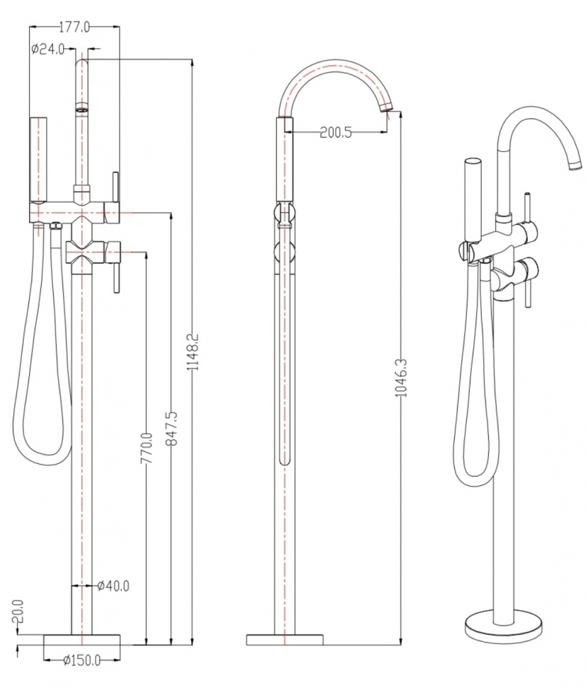 Смеситель для ванны Напольный Grocenberg GB900MG Матовое золото