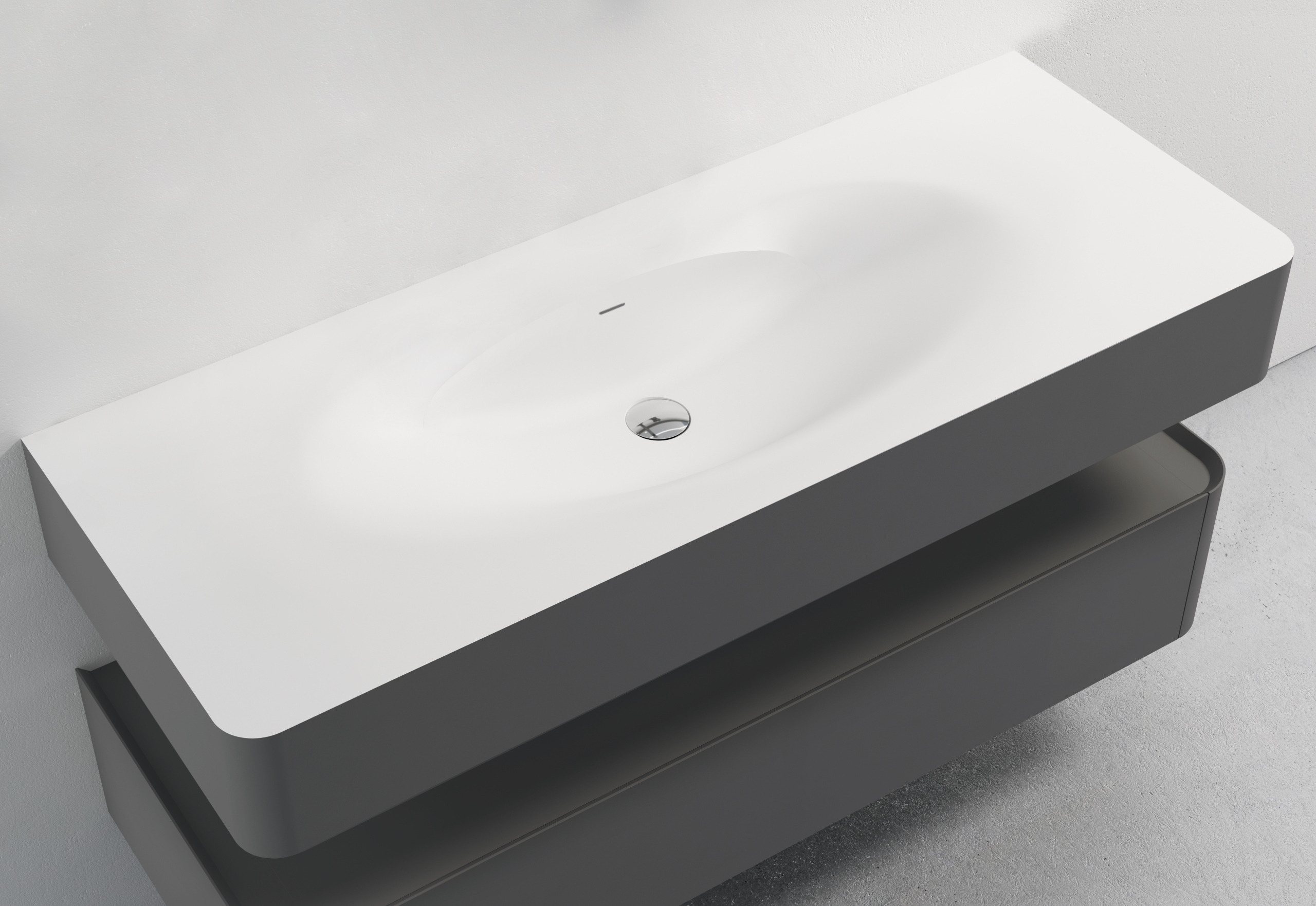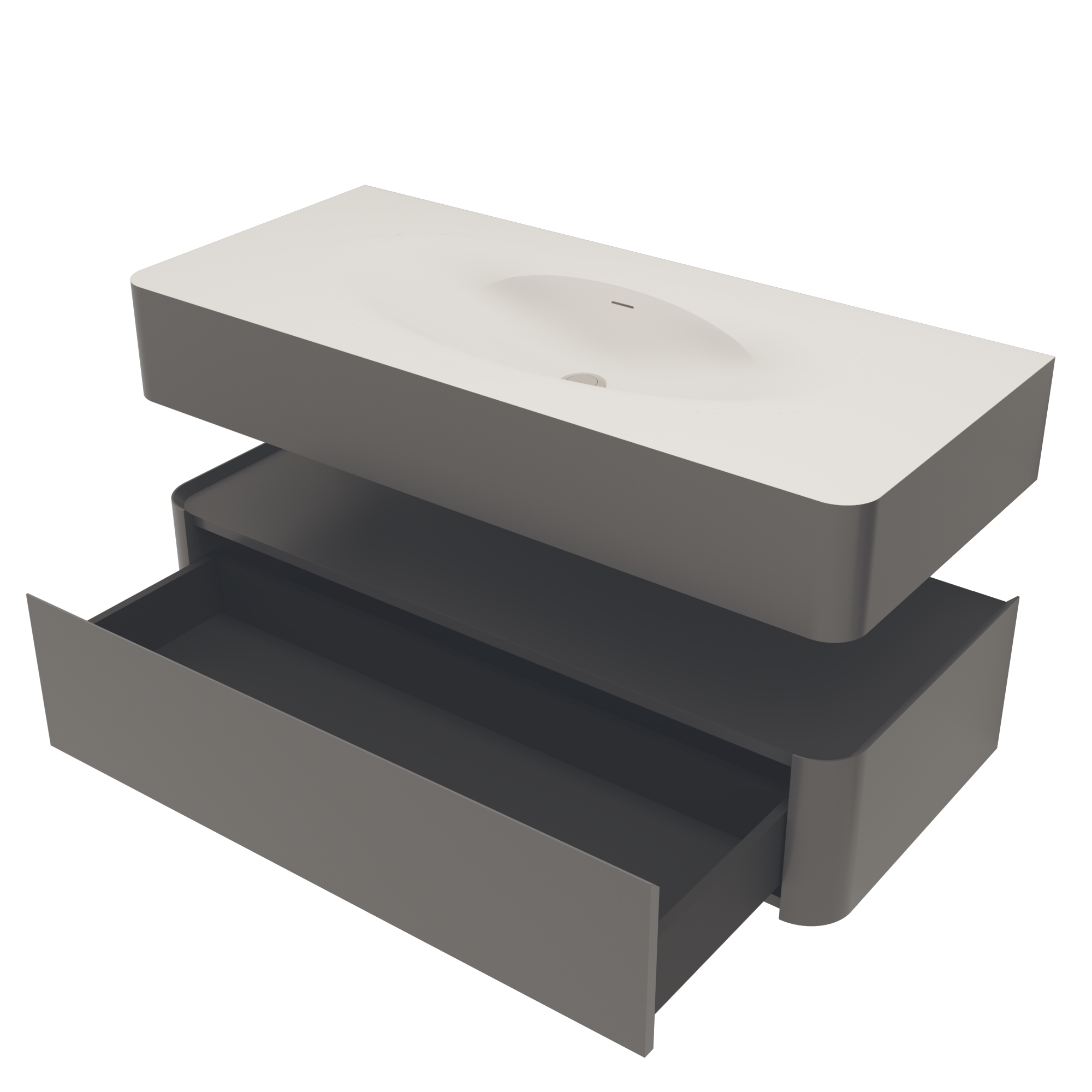 Мебель комплектуется раковинами из кориана, окрашенными в цвет тумбы