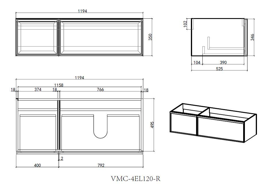 Мебель комплектуется раковиной из кориана VCB-4EL120MW-R