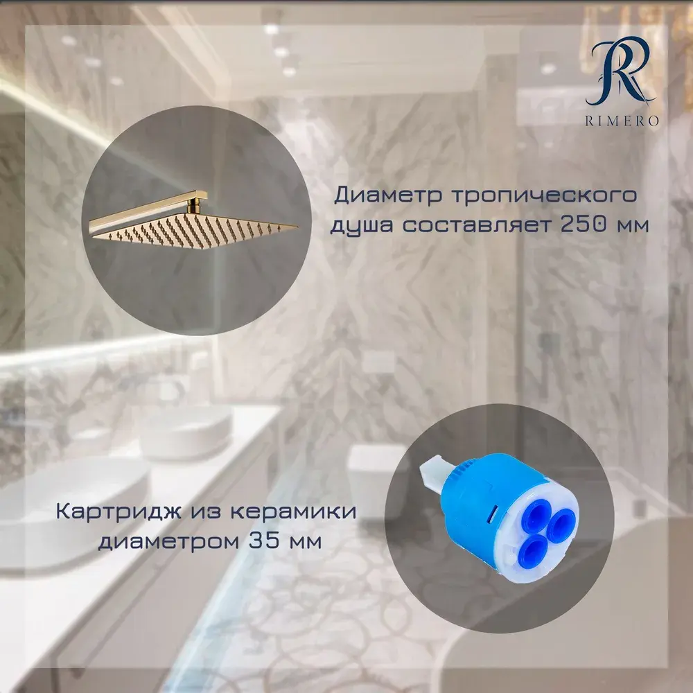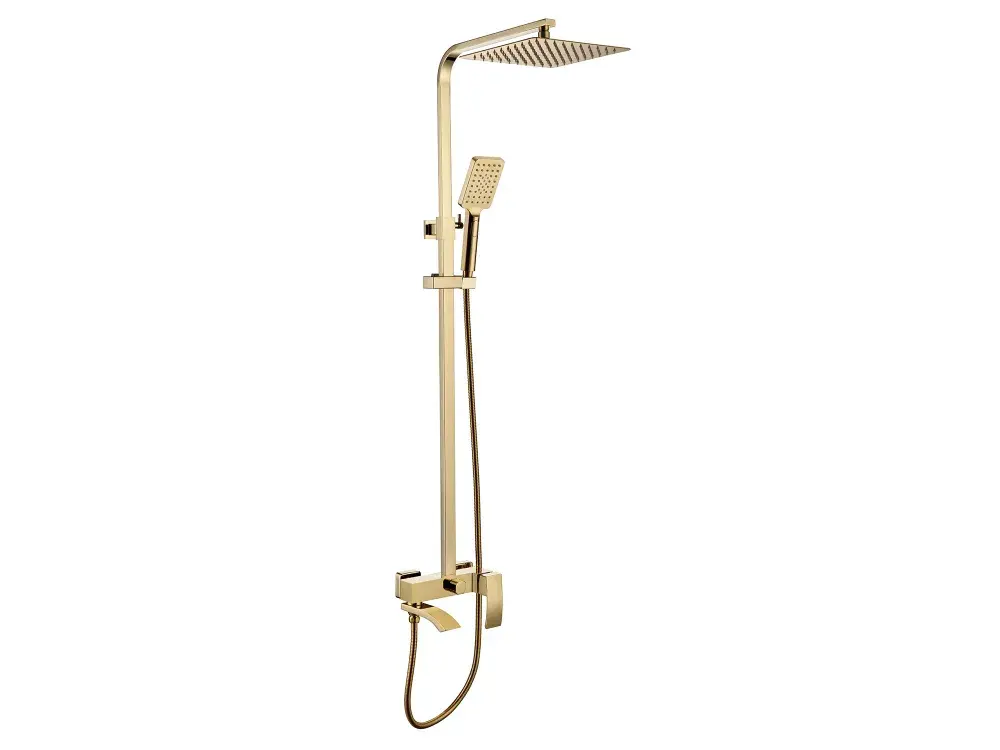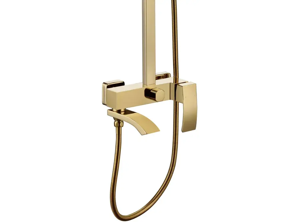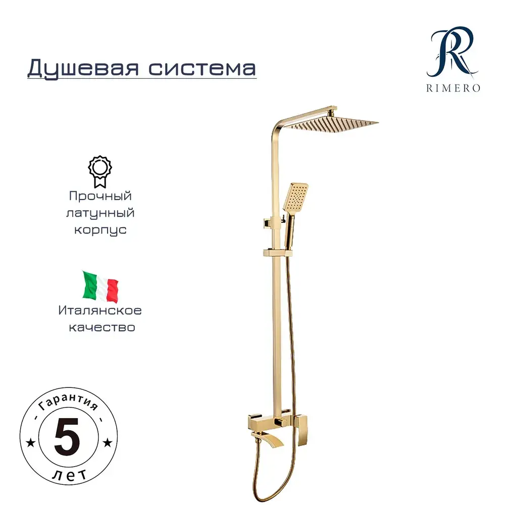 Душевая система RIMERO RM2407GO в изысканном золотом исполнении — это воплощение элегантности и многофункциональности для вашего санузла. Её лаконичный дизайн дополнит современное пространство, предлагая комплексное решение в виде смесителя, ручного душа. Комплект изготовлен из прочной латуни, что обеспечивает устойчивость к коррозии и длительный срок службы даже в условиях постоянной влажности. адаптируя систему под планировку любого помещения.
